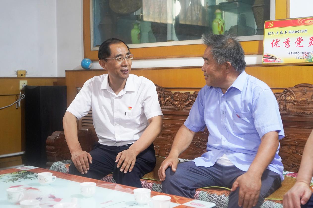 为热烈庆祝中国共产党成立104周年,继承和发扬党的光荣传统和优良作风,充分体现党组织对老党员、驻村干部的关心关怀,共同谋划助力乡村振兴工作,7月1日,交易中心党组书记、主任马学凯带队赴莱芜区羊里街道小增家庄村开展“跟党走 感党恩”走访慰问老党员主题党日暨助力乡村振兴座谈会。
